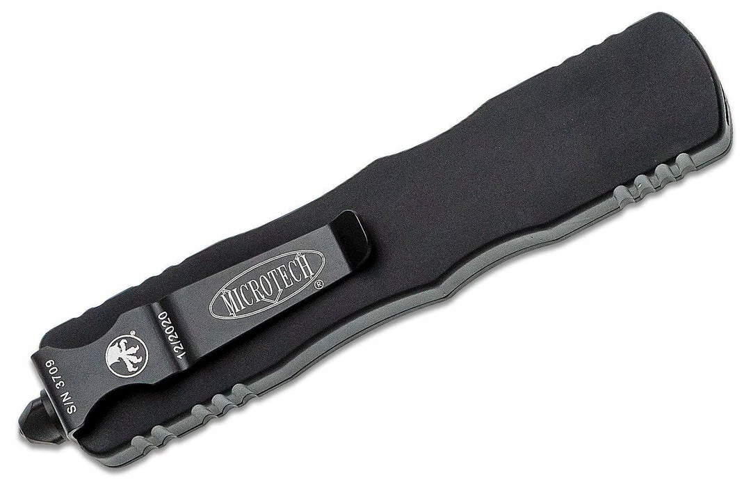 Microtech 227-3T Dirac Delta Tactical AUTO OTF Knife 3.79″ Black DLC Plain/Serrated Double Edge Dagger Blade, Black Aluminum Handles