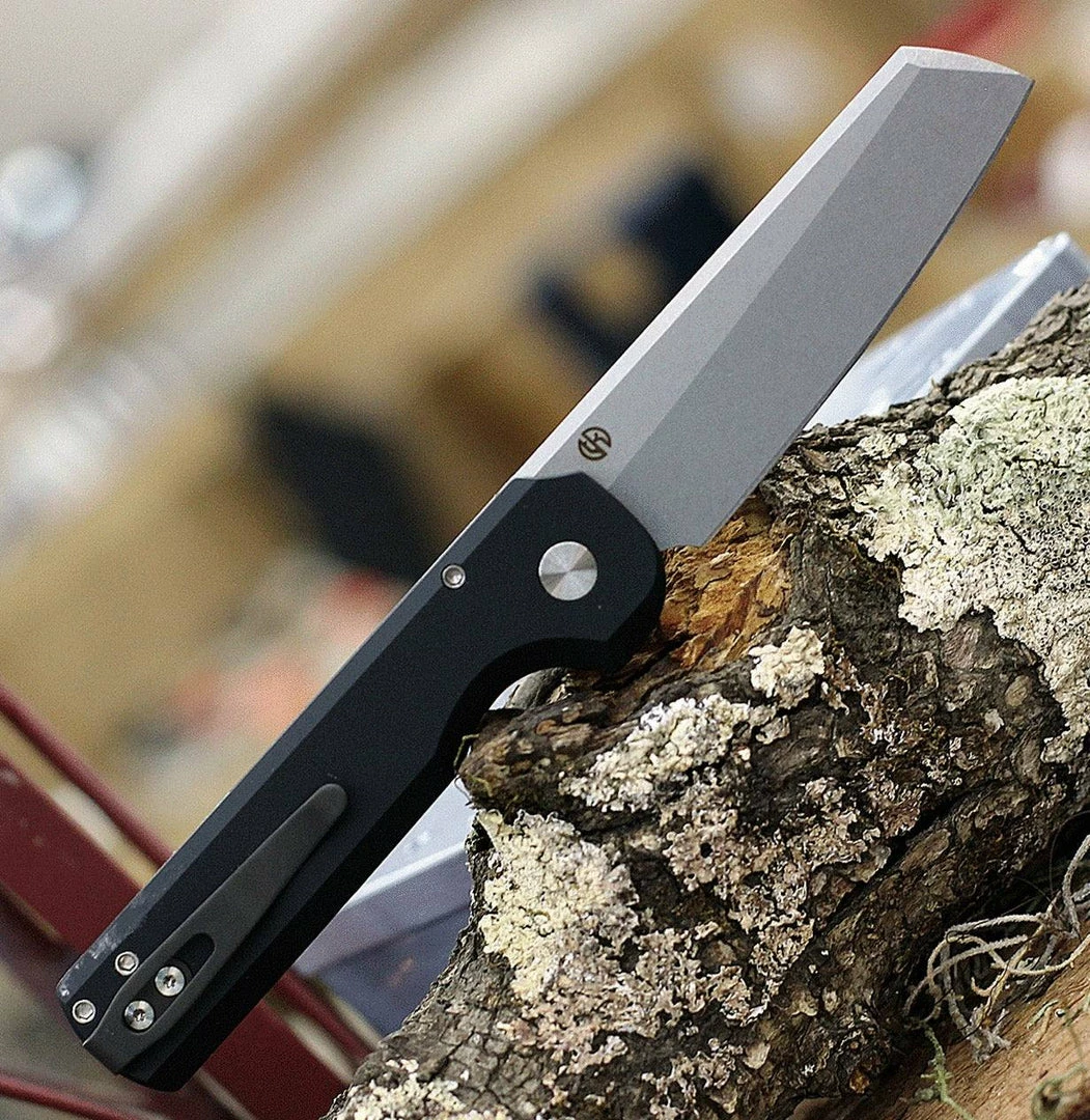 The Arcform Slimfoot is a USA-made automatic utility version knife of the classic Arcform Slimfoot. This is slightly more compact variation of the original, with a deep carry pocket clip, simple design, and clean lines.