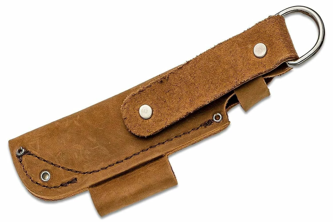 - Includes full-grain brushed leather sheath with D-ring, flint rod loop and retention strap.
