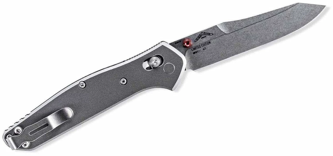 Benchmade 940 Osborne Knife Titanium (3.4″ S90V) 940-2001 is a very limited edition 940 with titanium handles and red anodized aluminum backspacer and thumb stud. The blade is made of ultra-premium CPM-S90V Stainless Steel.