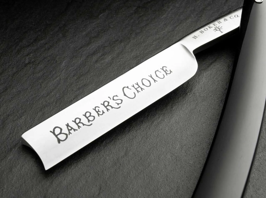 The re-release of the historic Boker Barber’s Choice has been a matter of the heart for us. In the pre-war era, the classic straight razor was considered the first choice for barbers who wanted to use a knife for all occasions, thus providing the best possible flexibility for shaving. Consequently, the razor uses a 5/8 inch wide blade with a Spanish head so that even impressive contours can be shaved out. The Barber’s Choice lettering adorns the front of the blade according to a historical model and is rounded off by the classic H.Boker & Co logo on the blade’s edge. Only on the basis of a historical original knife was it possible to carry out an elaborate restoration of the lettering, which then found its final and detailed implementation in a multi-layer laser process.