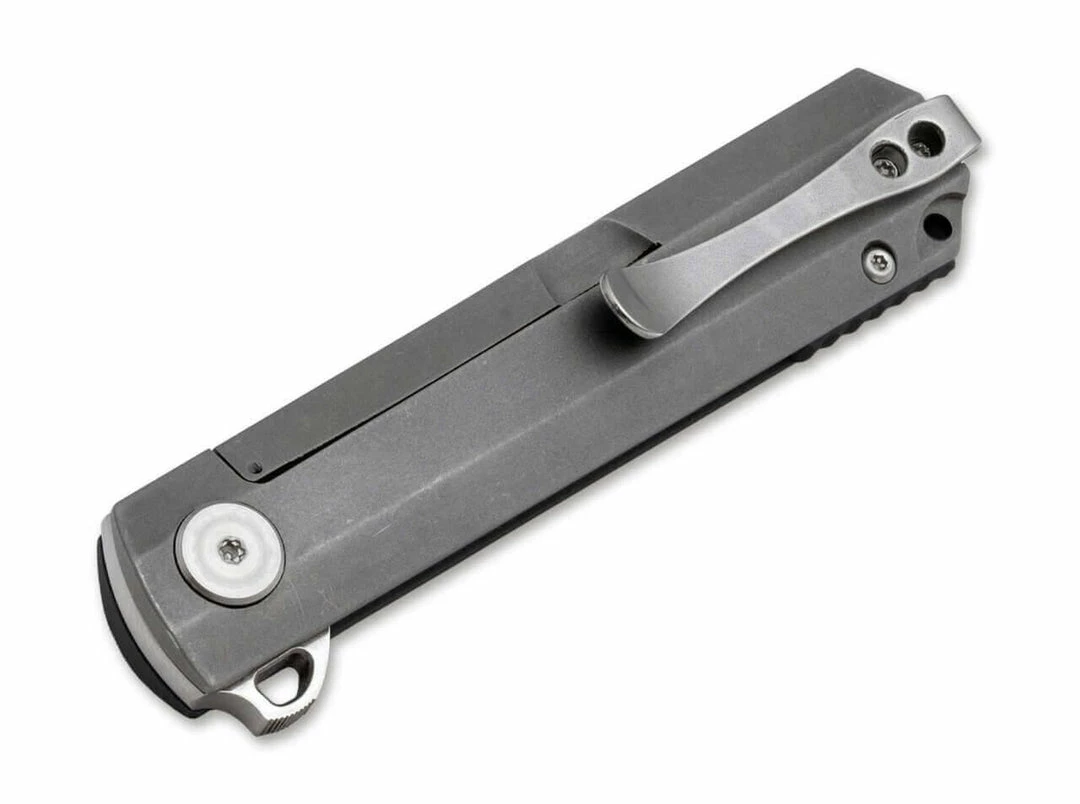The Boker Plus Cataclyst convinces as a combination of a modern EDC and a high-quality gentleman’s knife. The sturdy blade made of satin 440C is opened with a ball-bearing flipper and has a flat grind and a groove on both sides. It is reliably locked by a stainless steel framelock. Jimpings in the area of the thumb rest and on the spacer further increase working safety. The straight-lined design is supplied with a textured handle scale made of G10, which is milled three-dimensionally and has weight-reducing recesses on the inside. The robust handle and the deep-carry clip (tip-up/r), which is also three-dimensionally milled from solid, have a matt beadblast finish. Supplied with a lanyard hole.