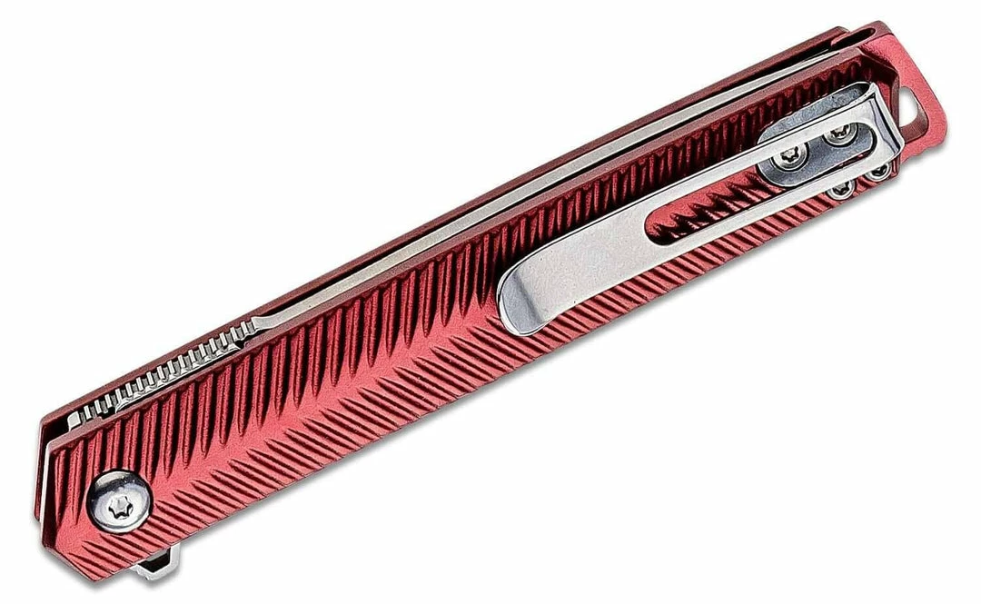 CRKT K820BXP Ken Onion Stylus Assisted Flipper Knife 3.18″ Sandvik 12C27 Satin Plain Blade, Maroon Aluminum Handles