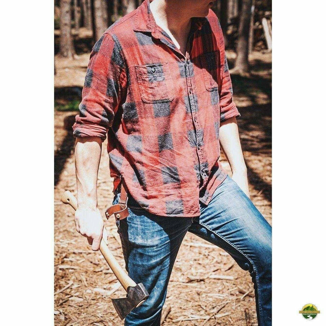 Made from the highest quality belt leather from Duluth that’s made in the USA. This Axe Holder is the perfect accessory to carry your axe or hatchet hands-free. Â