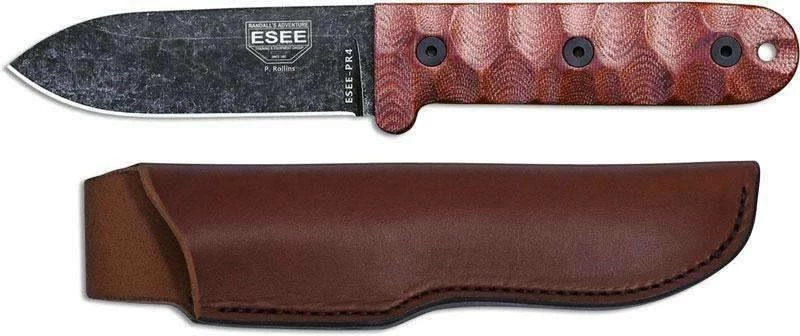 When it comes to wilderness chores, sometimes simple and straightforward is the best approach. The ESEE Camp-Lore PR4 is Patrick Rollins’ take on Horace Kephart’s classic design. The original prototype was made by James Gibson and tested extensively by Patrick during survival classes, off-trail backpacking, hiking, and camping. The Rowen built production PR4 features a 4.19″ blade with a 4.75″ handle, 0.125″ thick 1095 high carbon steel blade, 90-degree spine for striking a Ferro rod and a leather drop sheath. It may not be pretty but it is designed to work, like all the other ESEE Knives.