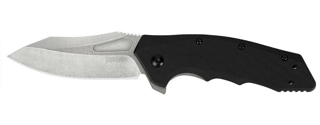 Kershaw Knives – Flitch Linerlock A/O. Model KS3930. Assisted opening. 4 1/2″ closed. 3 1/4″ stonewash finish 8Cr13MoV stainless modified drop point blade. Black textured G10 handle. Extended tang. Pocket clip. Boxed.