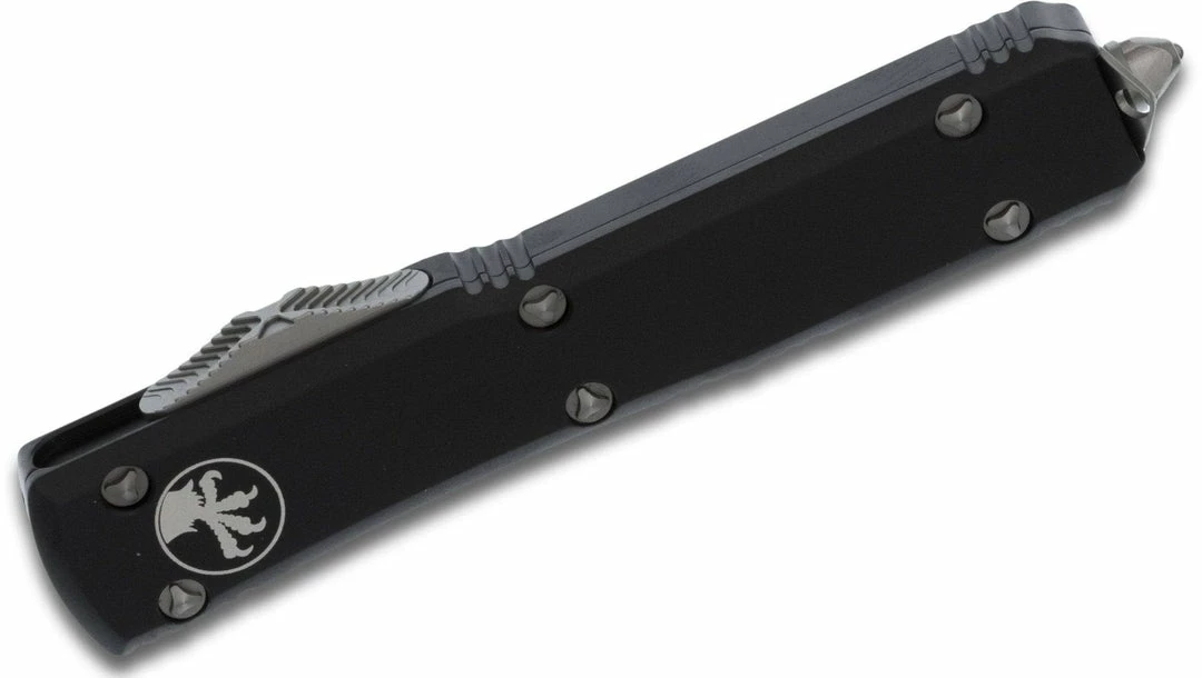 The Ultratech, will forever set the standard for all out-the-front knives. Ultratech is Microtech’s original dual action out-the-front knife, and has been the foundation of their entire OTF line. Over the years, it has gone through several modifications, each time becoming more efficient and reliable. This version has the improved contoured handle with texturing thumb slide for more positive purchase. The Ultratech’s spring remains in an “at rest” position at all times except when deployed. This ensures that the compressed spring will not become fatigued, assuring users that when the knife is fired, it will operate effectively. Ultratech can take many different forms; it can be topped with a standard machined aluminum top or a piece of carbon fiber. The Ultratech’s light weight, one handed open and close action, slim shape, and scalpel sharp blade make it a one of a kind knife, only available through Microtech. This knife has proven time and again that it can withstand any obstacle. Only time will tell what the next step will be for the Ultratech series.