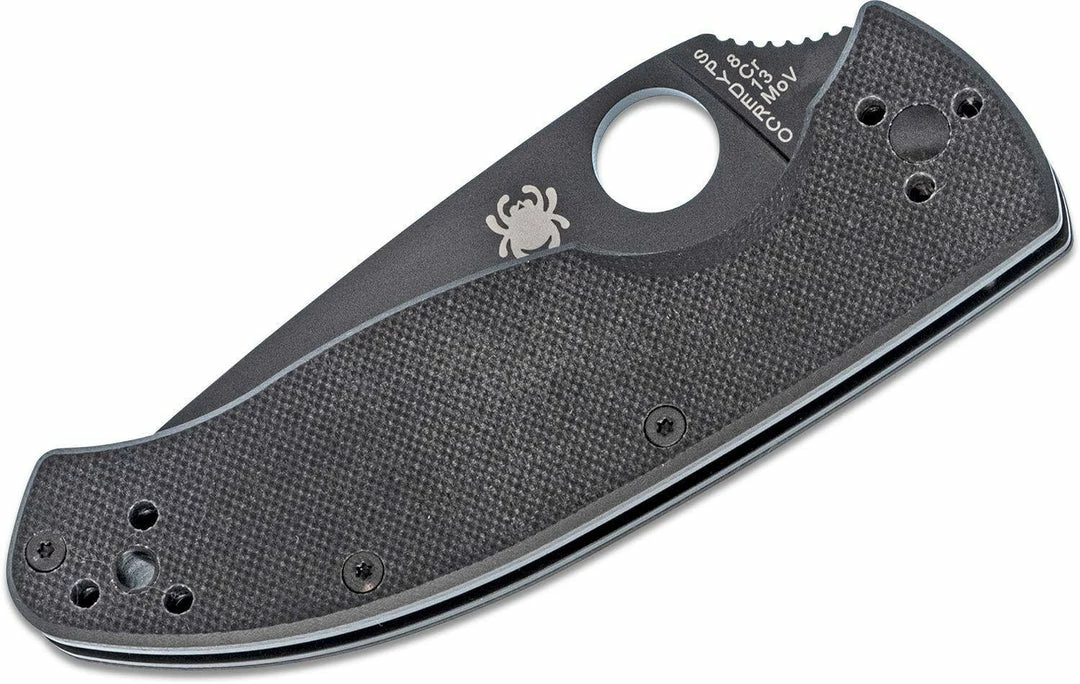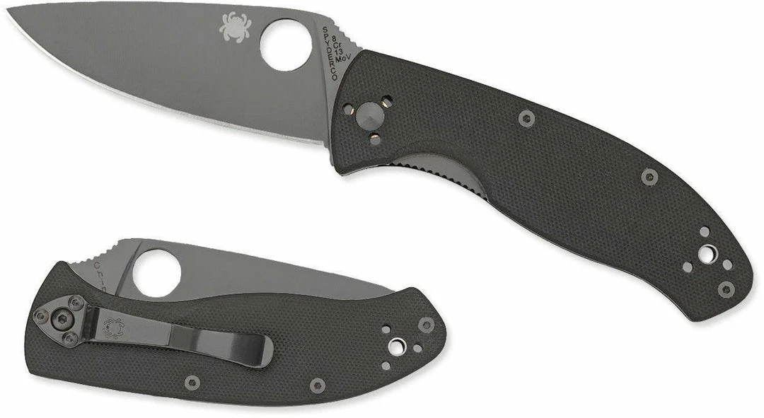Being tenacious means one holds fast. One is persistent and cohesive. It means being tough and tireless until achieving your goal: all knife-worthy definitions for a worthy knife. The mid-sized Tenacious has a black G-10 laminate handle, milled with prolonged fatigue-free cutting in mind. Tucked inside are skeletonized steel liners increasing the handle’s rigidity and strength without adding non-functioning weight or bulky thickness. The 8Cr13Mov stainless blade is leaf-shaped and ground flat from spine to cutting edge for cutting performance. The blade’s shape coupled with an oversized Spyderco Round Hole and textured spine jimping allow you to open the blade and position your thumb on the spine in slip-proof confidence ready for work. A Walker Linerlock (with jimped liner) and a 4-way pocket clip lets you set your carry and draw preference: Tip-up/tip-down left-hand/right-hand. Screw together construction.