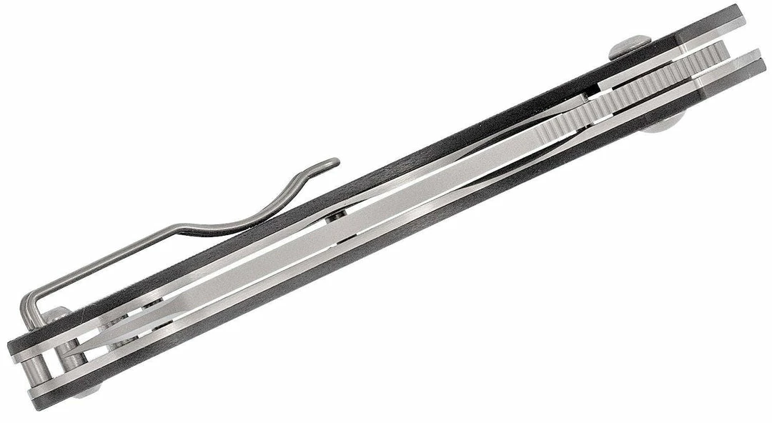 Ukrainian-born Serge Panchenko has been making custom knives for only a few years, but in that time has gathered a following. His first collaboration with Spyderco, the Roc, combines a unique cleaver style blade with a gracefully curved handle featuring skeletonized full stainless steel liners and textured black G-10 scales. The VG-10 stainless steel blade is saber ground for strength and has a utilitarian bead-blasted finish. It is backed by a sturdy Walker LinerLock mechanism and an open-spine handle construction for light weight and ease of cleaning. A reversible deep-pocket wire clip accommodates tip-up, left/right carry and ensures that this unique tool is always at the ready.